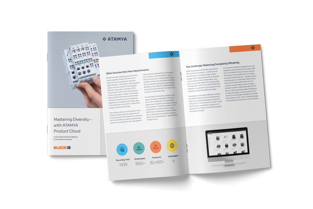 An important milestone related to this: The integration of the existing PLM system PRO. FILE into ATAMYA Product Cloud. Product information from development is, hereby, smoothly transferred over – namely, without manual exports or redundant data records. Even the automatic generation of norm-conforming data sheets is part of today’s standard process. Additionally, BLOCK has set up a central portal for sales: Globally upto-date and quality-proven product information is now digitally available around the clock thanks to this. This is a real advantage in consulting and customer communication.